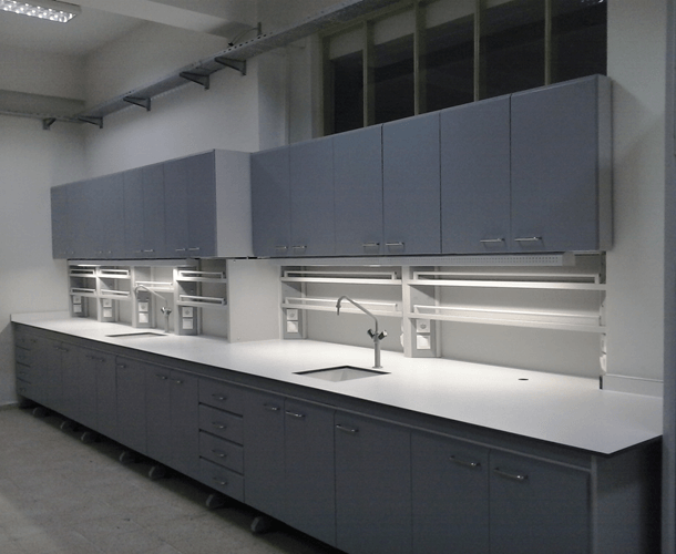 Tezgah üstü malzemesi seçimi : Laboratuvar tezgahlarında önemli olan ve en çok kimyasal madde ile temasta olan yer tezgah üstü malzemesidir.Kimyasal dirençi yüksek bu malzemeler