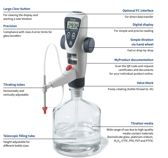 karşılayan ilk şişe üstü bürettir. Ayrıca, kolay titrasyon,