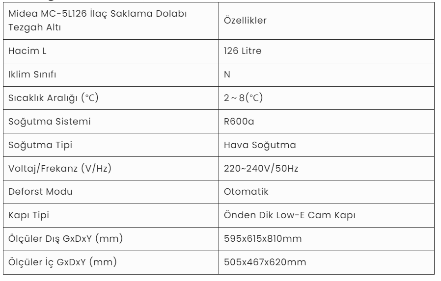 Midea MC-5L126 İlaç Saklama Dolabı Tezgah Altı