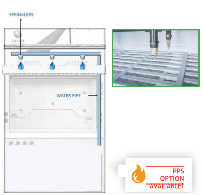 TopAir'in Polipropilen Çeker Ocak - Yıkama işlemi, mineral birikiminin kalıntılarını toplarken davlumbazın arka alanının tam ve etkili bir şekilde durulanmasına olanak tanıyan su sprinklerlerini içerir.
