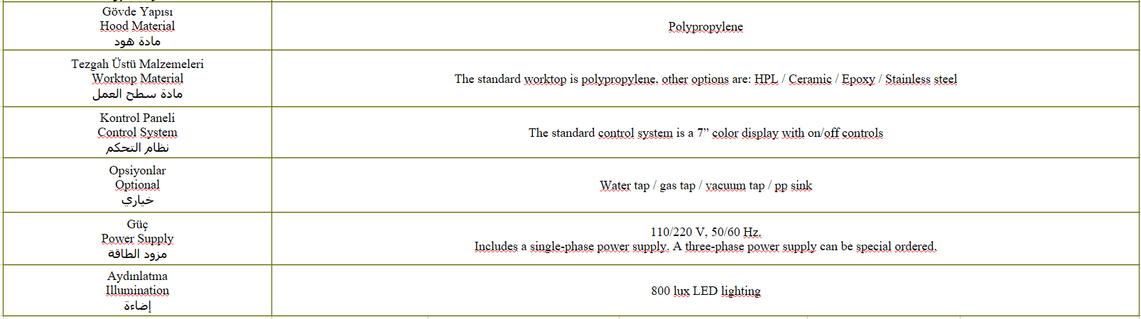 The fume hoods are designed for use with harsh chemicals and are independently tested and certified to EN-14175 / CE / ASHRAE 110-1995.